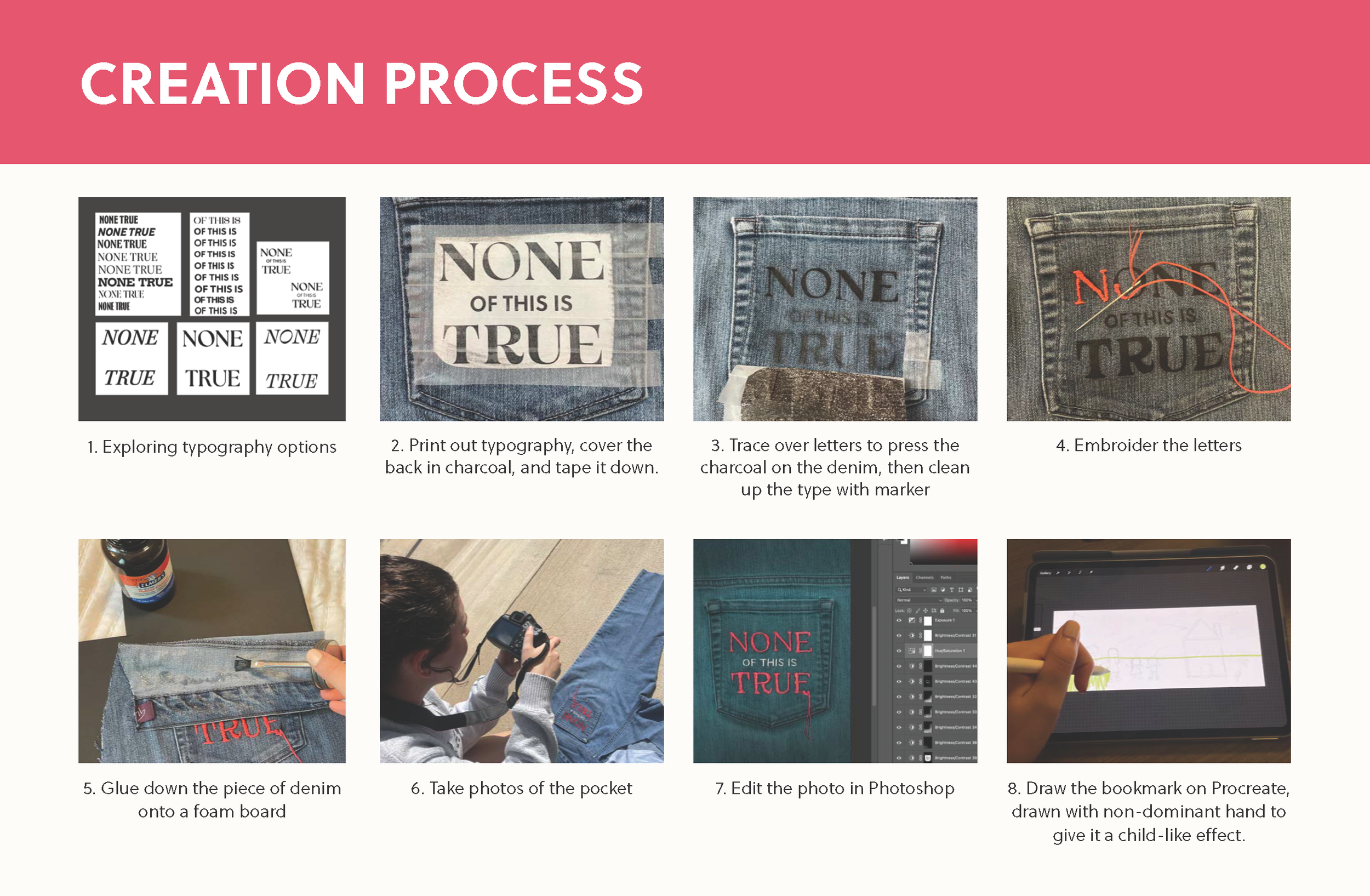 Software/Materials: Adobe Illustrator, Photoshop, Procreate, Denim jeans, Thread, Sewing needle