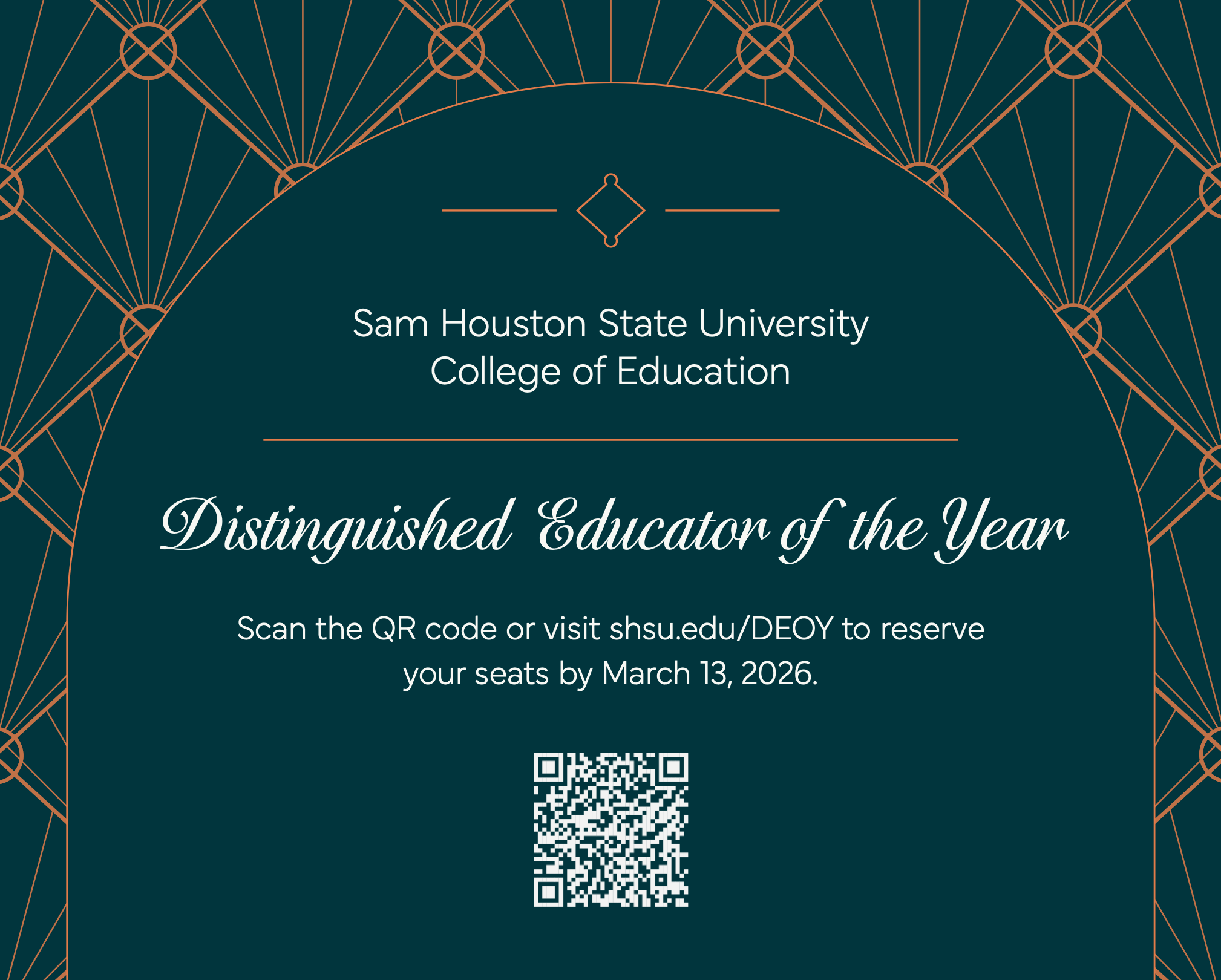 Distinguished Educator of the Year (DEOY) is an annual event hosted by the College of Education to celebrate and award outstanding SHSU COE alumni for their contributions to education. This is the highest award that education alumni can receive. I spearheaded the branding and visual identity for the event including: Invitations, RSVP cards, social media posts, awards, digital signage, event program, and table settings.